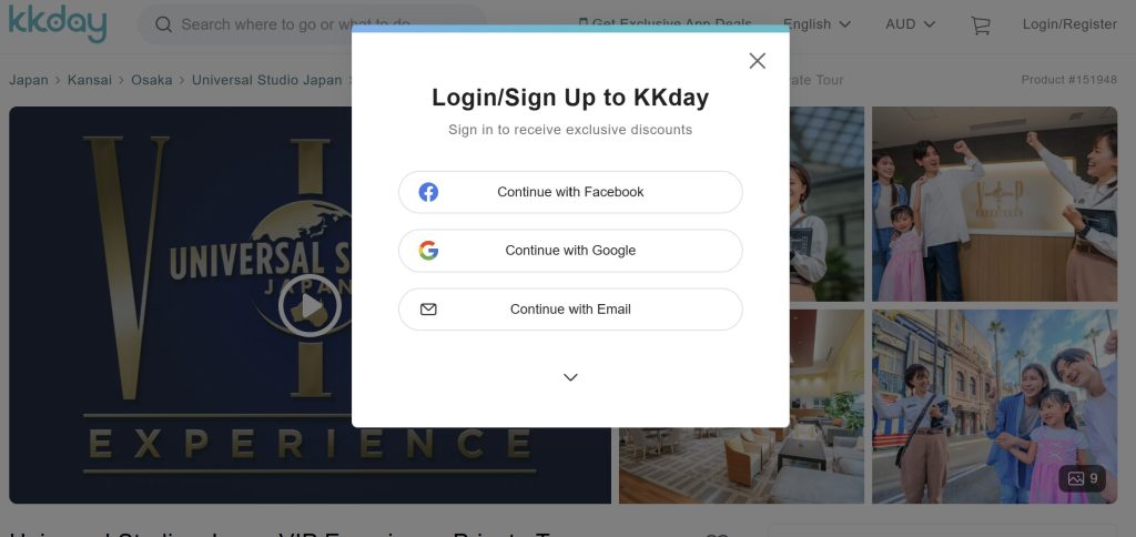 By logging in to the KKDay website on PC or on mobile phone, you can access any booking details. Be sure to use the email you used when purchasing your pre-sale – “Continue with Email”. Don’t use your Google account to sign in, even if it is the correct email as a member reported this is a known account duplication issue.
